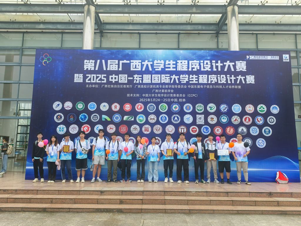 5月26日,第八届广西大学生程序设计大赛暨2025中国—东盟国际大学生程序设计大赛公布了比赛结果,我校信息工程学院参赛团队获得4项铜奖,获奖数量位居区内所有参赛高校第4位。