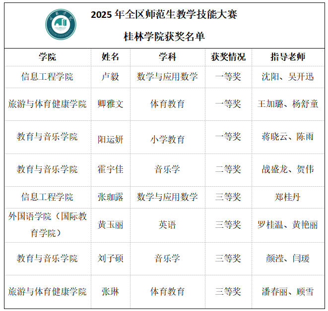 近日,自治区教育厅公布了2025年全区师范生教学技能大赛获奖名单,我校选手荣获一等奖3项、二等奖1项、三等奖4项。一等奖获奖数量位居区内民办本科高校第一。