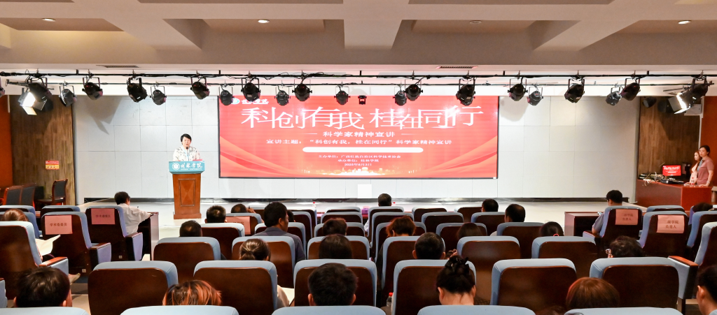 为大力弘扬胸怀祖国,服务人民的爱国精神,勇攀高峰、敢为人先的创新精神,追求真理、严谨治学的求实精神,淡泊名利、潜心研究的奉献精神,集智攻关、团结协作的协同精神,甘为人梯、奖掖后学的育人精神。6月3日,在桂林学院建校24周年之际,由自治区科学技术协会主办、桂林学院承办的“科创有我,桂在同行”广西科学家精神进校园专题讲座在我校隆重举行;广西师范大学省部共建药用资源化学与药物分子工程国家重点实验室主任,原广西师范大学校长、自治区科协副主席梁宏教授作题为“弘扬科学家精神,践行科教使命担当—我与广西化学和药学学科发展同行”的主题讲座。