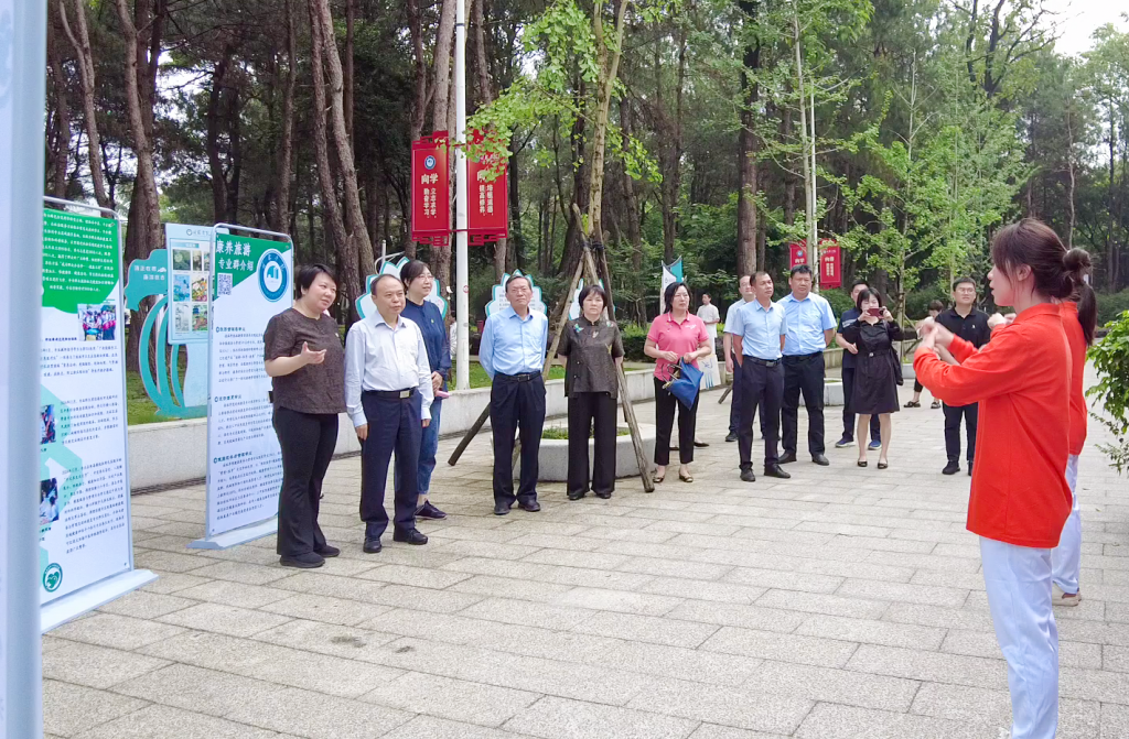 在杉湖家苑一站式学生社区,调研组体验了由学校运动康复、健康服务与管理等大健康相关专业学生准备的“芒种节气茶饮”及“坐式拍打脾经”,实地考察了运动康复、健康服务与管理等大健康相关专业建设情况及校园二期建设情况。