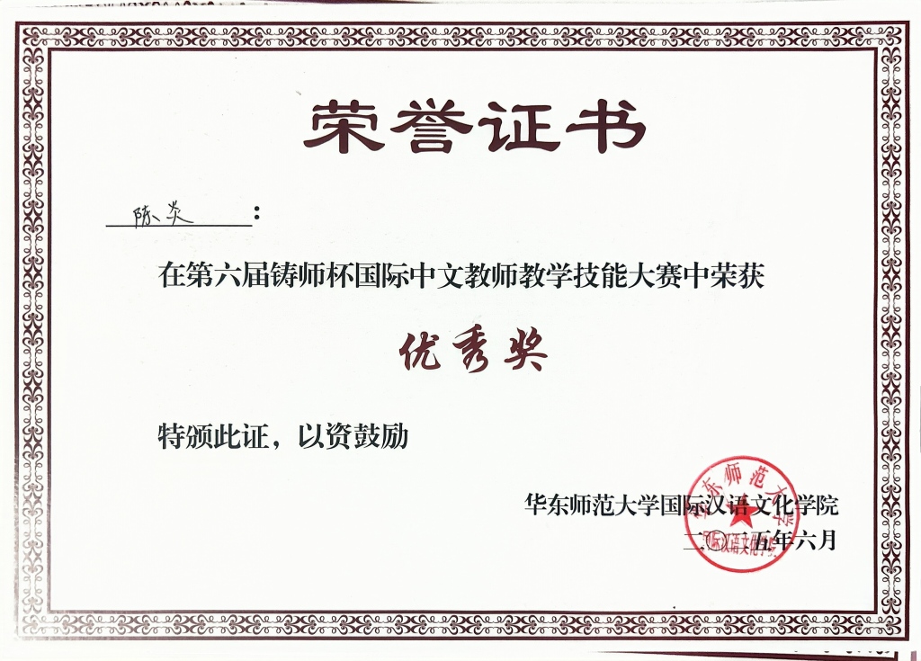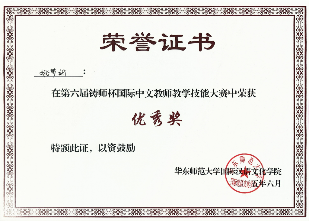 6月8日,由上海华东师范大学主办的第六届“铸师杯”国际中文教育教师技能大赛圆满落幕,我校学生荣获二等奖1项、优秀奖2项。大赛面向全国国际中文教育专业的本科生、研究生、国际生开展,是具有导向性、示范性、实践性和国际中文教育专业学科教育特色的教学实践竞赛。初赛阶段共有来自复旦大学、上海交通大学、厦门大学等122所高校358名选手积极参赛,共有38位选手进入决赛。