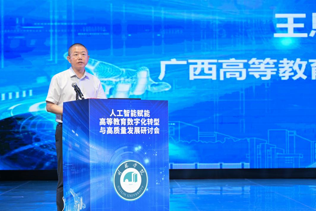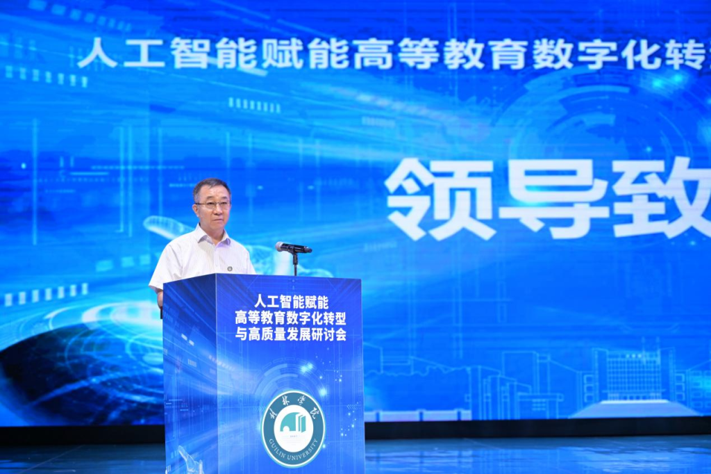 吴郭泉在欢迎辞中表示,本次研讨会恰逢其时,意义深远。他提到,教育部发布的《中国智慧教育白皮书》为智能时代教育变革描绘了宏伟蓝图,桂林学院将积极响应国家战略,推动人工智能与教育教学深度融合。吴郭泉还特别感谢广西高等教育学会的信任与支持,并期待与会专家为学校发展建言献策。