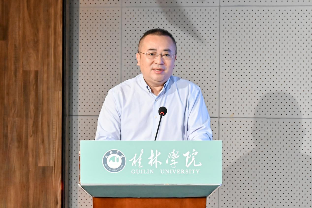 吴郭泉首先代表学校致辞,人工智能学院的成立是学校深入贯彻国家及自治区人工智能发展战略、服务桂林市“人工智能+”行动部署的关键举措。“作为桂林市唯一一所市属全日制民办本科高校,服务城市发展是桂院的应有之义、应有之举。”吴郭泉对桂林市、高教学会及相关部门单位的支持表示感谢,表态将把新学院建设成为“服务桂林、辐射广西、面向东盟的人工智能科教高地”,努力为地方发展贡献“桂院智慧”。