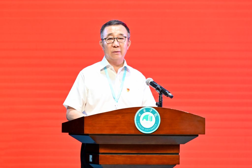 校长吴郭泉作题为《实施人才强校战略,深化人事制度改革,为全面提升学校人才质量和优化师资结构而团结奋斗》的主题报告。报告系统梳理了学校人才工作成效:引才政策竞争力持续提升,引才程序高效规范,人才总量与结构向好。报告精准剖析了学校当前面临的人才总量不足、结构有待优化、发展环境亟待改善的三大挑战,并提出未来攻坚方向:一是构建高质量发展“新布局”,坚持党管人才,优化校院两级管理,调增薪酬待遇;二是打造人才集聚“强磁场”,借力桂林市政策支持,精准施策引才;三是营造人才发展“新生态”,搭建科研平台,深化评价改革,加强教师分层培养;四是筑牢人事管理“基石线”,强化师德师风建设,推行“负面清单”与“正向激励”双轨机制。