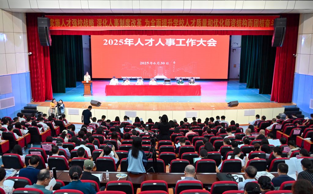 本次大会正值学校“十四五”规划收官、“十五五”规划谋划的关键之年,亦是迎接教育部本科教学工作合格评估的冲刺阶段,旨在凝聚共识、科学谋划,为全面提升人才质量与优化师资结构注入强劲动力,以“党建引领、人才强校”为主题,明确了坚持党管人才、深入实施人才强校战略的重要性。大会号召全体教职工要以教育家精神为指引,争做立德树人“大先生”、改革创新“排头兵”、爱校荣校“主人翁”,凝心聚力打赢合格评估攻坚战,为学校高质量发展再立新功。