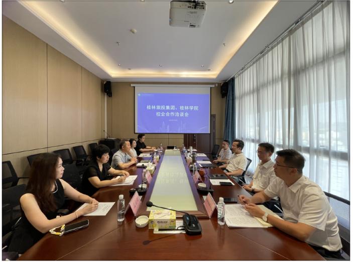 7月7日,校长吴郭泉带队前往桂林旅游投资集团有限公司开展校企合作座谈交流。双方就深化合作、服务桂林地方发展进行深入交流,共同探索文旅产业发展新路径。桂林旅游投资集团有限公司董事长宁志、总裁阳有斌出席座谈会。