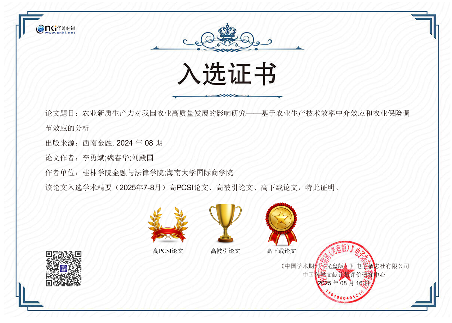 近日,中国知网下属中国科学文献计量评价研究中心(简称“知网评价中心”)依托中国知网收录的国内学术成果,开展学者学术影响力客观评价工作,学校金融与法律学院教师李勇斌成功入选“2024年度中国知网高被引学者Top5%”名单。