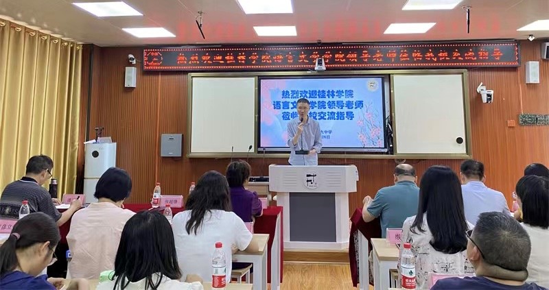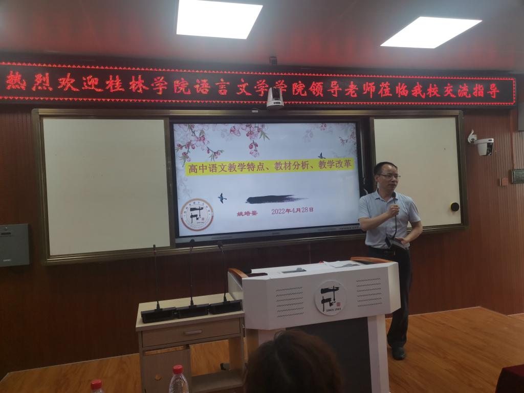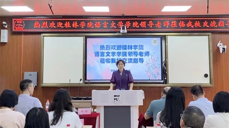 为加强基础教育和高等教育的联动,深入推动高校毕业生见习、实习、研习、就业等工作,4月28日下午,语言文学学院院长何玲、副院长张超锋携语言文学学院各教研室主任与骨干教师代表一行13人赴桂林市第十九中学开展协同育人论坛活动。桂林市第十九中学校长蒋文荣,副校长姚培鉴、副校长程晓玲和副校长潘宇以及29位实习生指导老师出席本次会议。会议由桂林学院语言文学学院张超锋副院长主持。