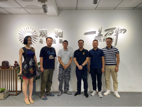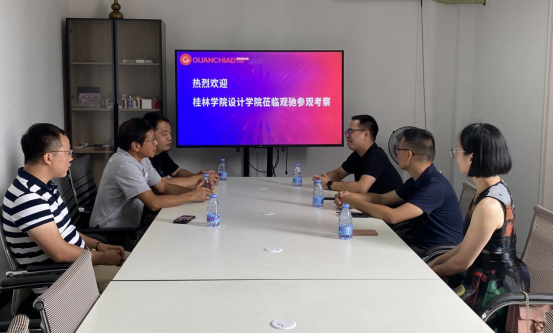 8月12日,设计学院曾子杰院长带队,到毕业生工作单位广西观驰品牌策划有限公司开展访企拓岗专项行动。贺雷副院长、视觉传达教研室主任邢福生、工艺美术教研室主任杨娟、数字媒体专业教师刘鹏共同参加活动。