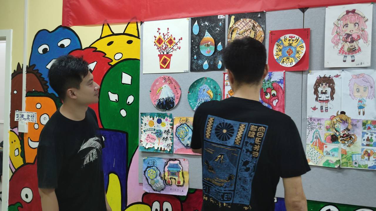图:体育与健康学院学生工作队伍参观培训学校幼儿绘画作品