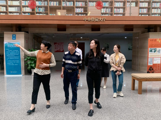 钟毅院长一行六人首先在副馆长曹旻的带领下参观了图书馆各区域不同图书分类,从数字化展物到拓印复本的收藏以及不同板块的专题展览等感受馆内丰富的资源储量。随后双方以座谈会形式,观看了图书馆历史资源视频,钟毅院长首先对我校近些年来的发展情况以及我院的专业情况,到场的领导老师进行了简要讲解。副馆长曹旻向钟院长等人对此也详细介绍了图书馆发展概况以及人才需求情况,表达了与学校进一步加强合作交流、实现共同发展的愿望。