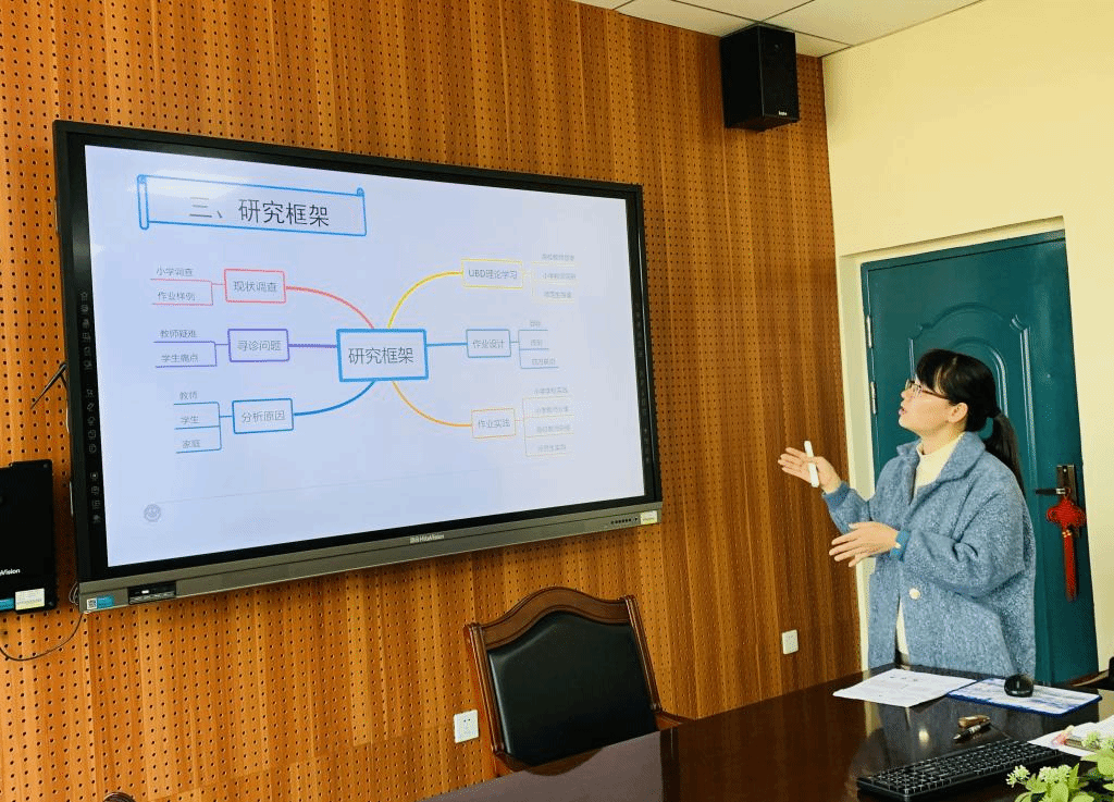 教学科研处副处长肖立章陈述了此次课题申报和立项情况,我校黄小玲教师团队申报的《“双减”背景下广西小学生作业设计与实践研究——基于UBD理论视角》获得广西教育科学规划2021年度“双减”专项重点课题立项。项目负责人黄小玲就课题研究的目标、课题研究计划、课题研究内容、重难点及拟解决的途径、需要的保障措施、预期成果成效等方面做了开题报告。