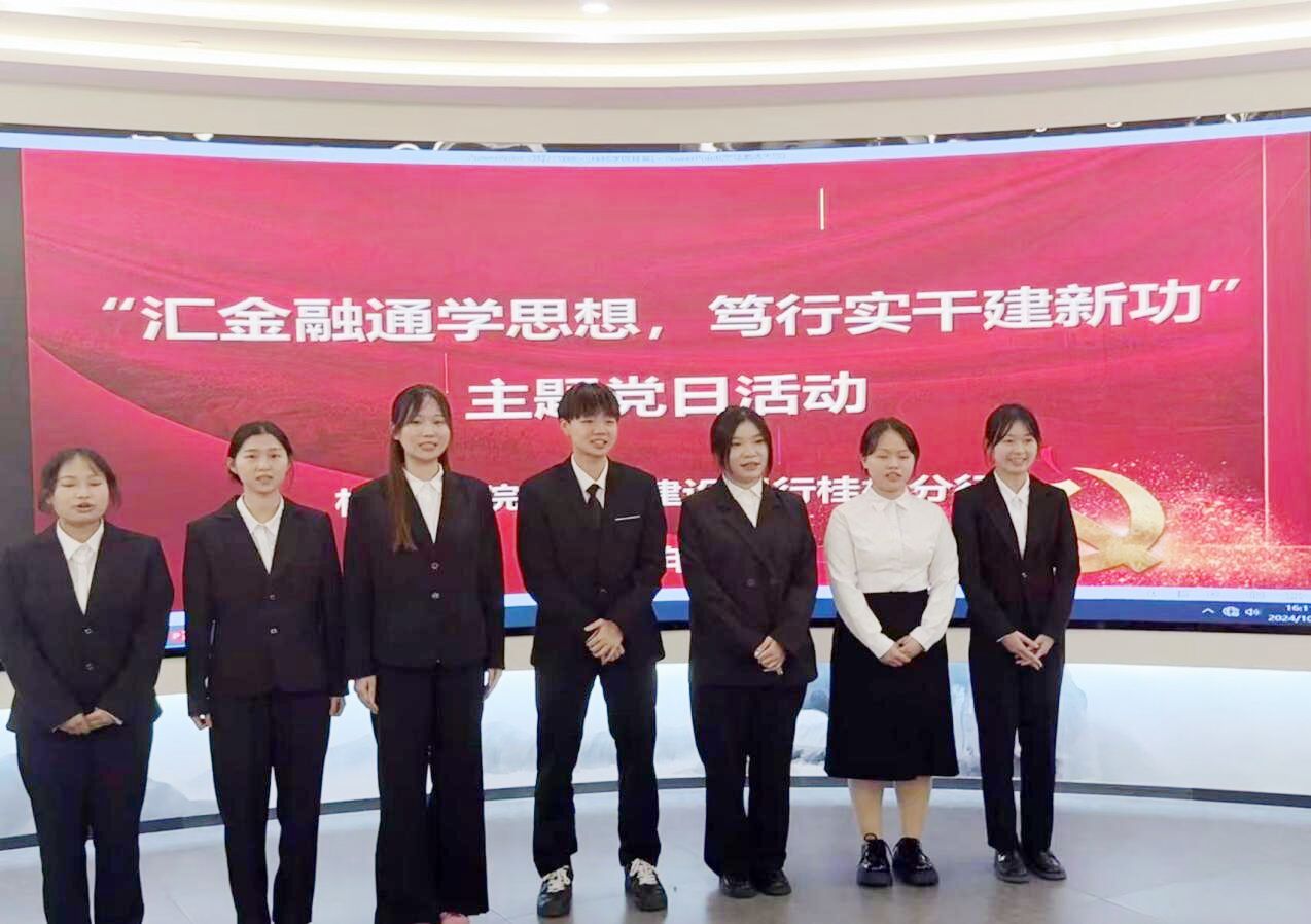 活动伊始,中国建设银行桂林分行人力资源部负责人对到企业参观的老师同学们表示热烈欢迎,并带领实务班学子们了解企业银行的运营区域。随后,参观了建行“秀山·乐水”文明践行馆,了解了中国建设银行桂林分行党委党建品牌“漓水红船”的建设思路和内涵。他们用党旗引领建行发展,深入基层群众,发挥着基层党支部的战斗堡垒作用。