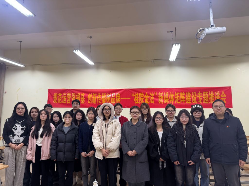 为规范公众号运营流程,打造更具影响力的校园新媒体平台,3月12日,金融与法律学院召开“桂院金法”新媒体矩阵建设专题推进会。会议以“规范运营强根基 创新传播树品牌”为主题,旨在为学院新媒体发展聚力量、谋发展。学院党总支副书记、团总支副书记及新媒体部全体成员出席会议。