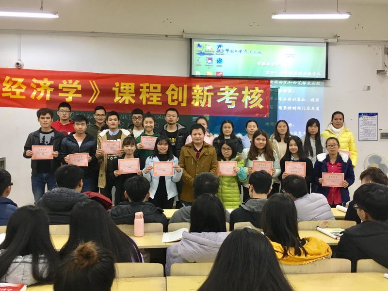 此次创新考核活动,2014级经济学专业两个班的学生都能够认真准备,积极参与,取得了良好的效果。参加创新考核的每名同学进行PPT精彩展示和讲解过后,通过评委的认真评判,李振兵的《广西梧州工业发展研究》、麦汝思的《浅析粤桂合作对广西经济发展的影响》、沙颖玲的《贵港市经济发展现状及对策研究》等课程论文荣获一等奖;韦媛的《“一带一路”战略下广西跨境电商发展平台调研——以北部湾经济区南宁组团为例》、谭玉柳的《高铁发展对玉林市经济的影响》等课程论文荣获二等奖;黄海明的《南宁总部经济发展研究》、苏如玲的《浅谈防城港市对虾养殖的发展现状及对策》等课程论文荣获三等奖。