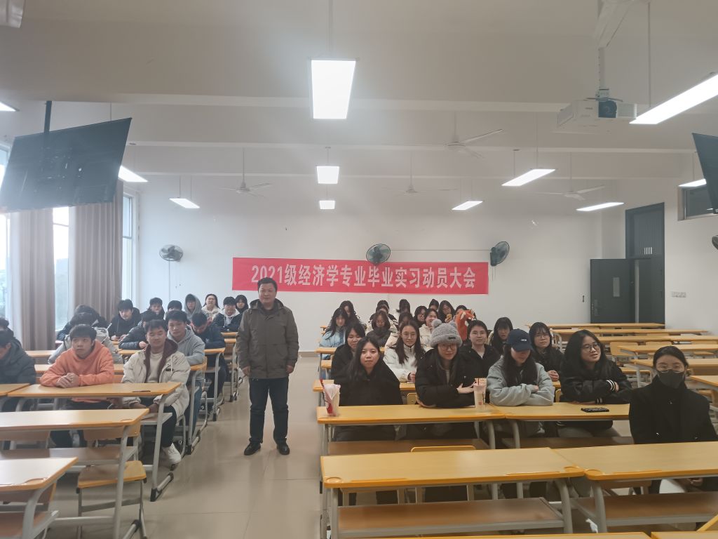 为有效促进2021级经济学专业学生达成实习目标,做好学生顺利毕业的充分统筹,金融与法律学院经济学教研室于4月19日,在1208教室召开了经济学专业毕业生实习动员大会。