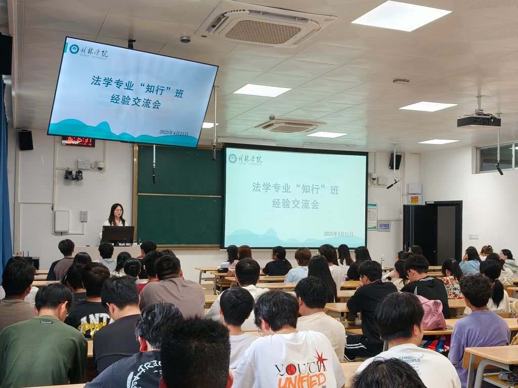 4月21日,金融与法律学院应用法学教研室在1211教室举办“知行班”经验分享会。此次会议特邀广西建善律师事务所律师、第二届“知行班”学员李伶俐和第六届“知行班”学员陈安琪进行经验分享。会议由张晓敏老师主持,2023级法学专业全体同学参加了分享会。
