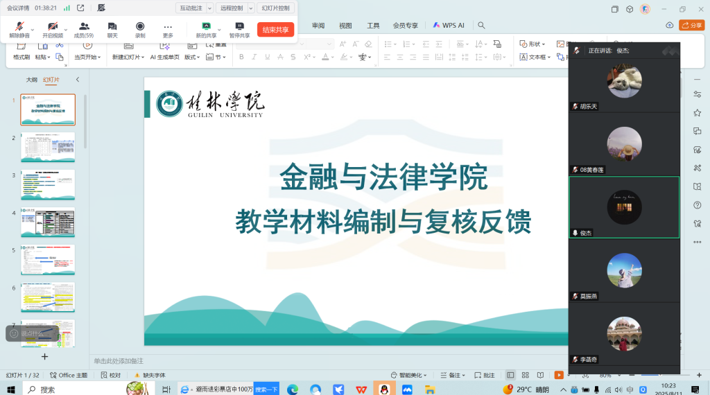 针对暑期新教师分散各地的实际情况,学院于暑期开展首场线上培训。培训聚焦教学材料规范化核心需求,围绕《桂林学院教学材料规范》,系统解读理论课程档案、实验实训课程档案、毕业实习档案及毕业论文(设计)档案四大类材料的归档要求与标准。针对新教师普遍关注的教学大纲修订、授课计划表填写、教案设计、教学过程登记等关键环节,培训团队结合实例详细讲解:教学大纲需依据布鲁姆教育目标分类动词撰写课程目标,精准对接人才培养课程矩阵 HML;教案需严格按照学校模板编写,重点融入思政元素;教学过程登记表需规范记录考勤、课堂表现与作业情况,确保 “教学基本法” 落地见效。