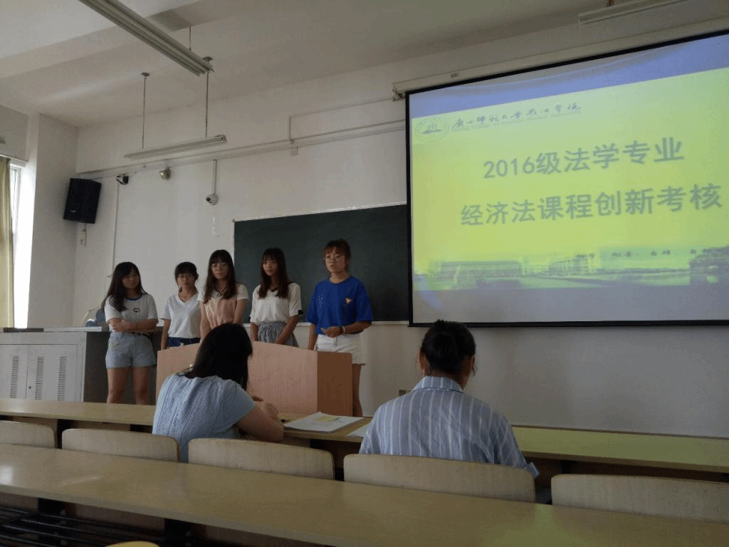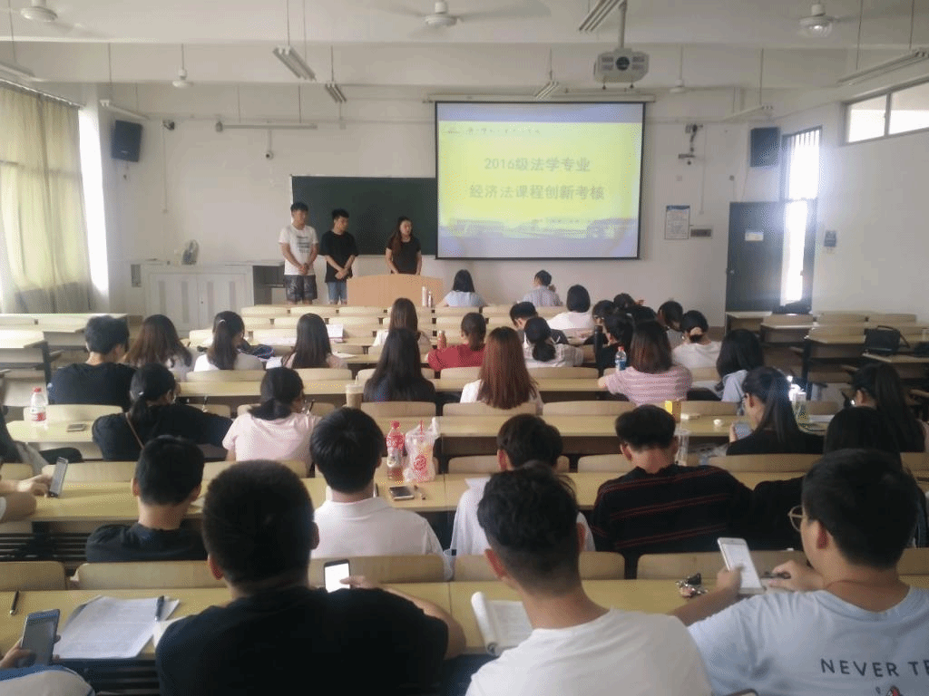 2018年6月26日在1414教室成功举行2016级法学专业《经济法》课程创新考核,并邀请经济政法系法学教研室黄维娜老师担任考核现场评委。在考核过程中,重视理论与实践相结合,注重培养学生运用我国经济法的基础理论和和经济法思维解决实际应用问题的能力,提升学生运用知识分析问题的综合能力。