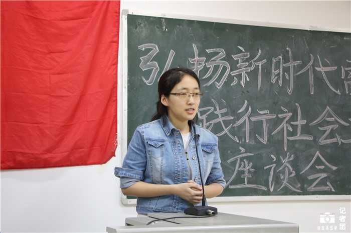 团总支书记成雅贞与在座代表们探讨什么是雷锋精神
