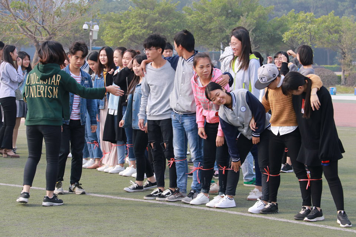 秋风颂爽的早晨,满怀笑颜、充满朝气的青年志愿者们在田径场有序集中,开启有意义的干训。各式各样有趣的游戏,欢声笑语填满了田径场。最令人欣喜的是系腿走和拔河,在系腿走活动中经政系和中文系各分成三组进行比赛,每位队员既紧张又兴奋,过程中有跌跌撞撞、步伐不整齐,但是每一组都没有放弃,而是团结并进,努力走向终点。拔河比赛更是激进,首先是团队间的比拼,最后是两系的对决,比赛开始队员们相互用力往本队后方拔,加油声也相继越来越大,最后由中文系获得本次活动的胜利。在此次活动中,充分体现了友谊第一、比赛第二的含义,使在场的各位志愿者收获了不一样的感受。干训逐渐接近尾声,大家拎着各自的小奖品,合影留念这快乐时光,为活动做出完美的结束语。