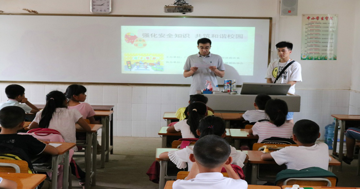 本次活动主要以安全知识讲堂和安全教育情景剧两个形式进行普法。首先,由广西师范大学漓江学院法律援助协会进行法律和安全知识讲堂,主要内容有:法律知识、防溺水知识以及交通安全知识。在讲解的过程中与同学们积极互动,让同学们更好的了解安全知识。其次,由广西师范大学漓江学院经济政法系团学表演安全教育情景剧。情景剧主要向同学们反映校园欺凌问题,并向同学们展现如何正确处理此问题。最后,进行活动总结。