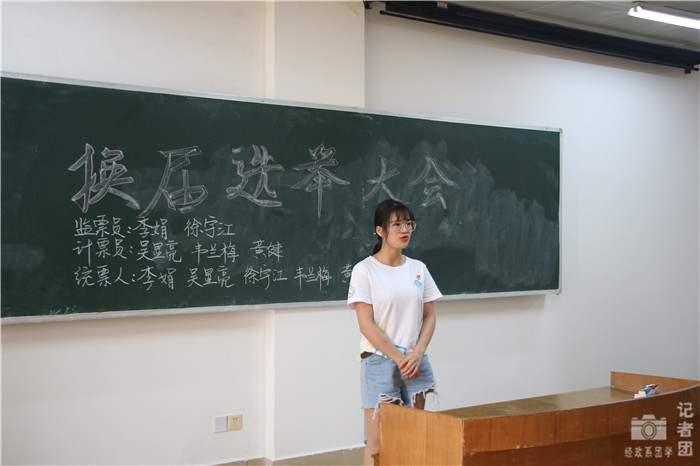 经济政法系团总支学生会是一个专注于服务经政系,不断活跃在校园建设中,积极投身诸多活动,为学校做奉献的团体。历年来团学一直秉承着公平、公正、公开的原则,不断优化换届选举方案为团学注入新鲜血液,将团学的风采继续传承下去与发扬光大。此次团学换届工作以各部门内部的面试、笔试以及团学全体成员匿名投票等方式组成,要求竞选者品学兼备、工作能力出众、具有积极向上且认真负责的思想态度。在第一轮面试中,通过问答的方式来了解竞选者对竞选职位的所思所想,而笔试环节,则是检验竞选者对团学工作运营的熟知度和对相关职位工作的掌握情况。换届选举大会期间,竞选者纷纷在台上以精练简短的语言来表达出自己对学生会工作的热爱,并表示自己会本着严谨、积极、负责的态度将团学工作做好,齐力打造出一个更优秀的学生会。最后由团学全体成员本着公平公正原则进行无记名投票选举,选出自己心中的候选人。