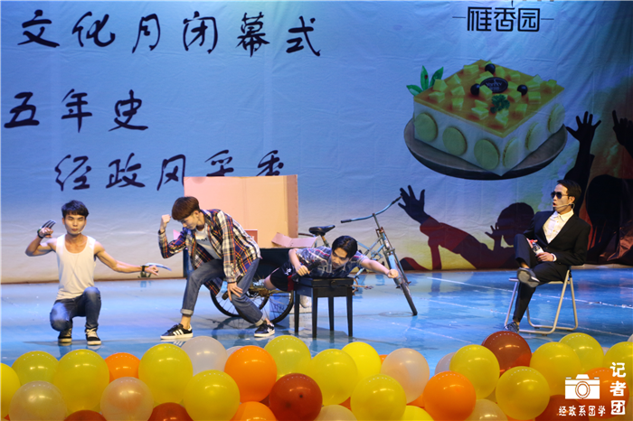 晚会在精彩、震撼的跑旗表演中拉开帷幕,其气势非凡,振奋人心,点燃了现场观众的热情,赢得了热烈的掌声。随后,党总支书记秦丽芸为此次晚会作开场致辞,她首先祝贺我校成立十七周年以及经济政法系迎来5周年系庆,她希望经济政法系能够在未来的成长道路上开拓创新,砥砺前行,为学校、为社会培养更多的优秀人才,最后她预祝本次晚会取得圆满成功,也祝愿经济政法系越来越棒。晚会中,观看了经政系五周年纪念短片,回眸了解我系的发展历程,同时也迎来了经政系吉祥物经小政。随后,闭幕式晚会正式开始,民舞队的舞蹈《百蝶香扇》优雅柔和,演绎了传统舞蹈的风韵与优美;经政系团学干部表演的小品《超能英雄》诙谐幽默;《生命电波》在主持人队风情并茂的朗诵下,使大家对社会道德进行了深度思考;礼仪队的风采表演《Show time》,使现场气氛热情高涨,赢得了台下观众的一阵阵喝彩;声乐队带来歌曲串烧《男孩》和《平凡之路》,充满了青年大学生的激情与活力。精彩的晚会表演期间,党总支书记秦丽芸和团总支副书记贺春先为本届文化月五个子活动的得奖者依次颁发荣誉证书,党总支副书记陈建文和团总支书记成雅贞为“文明修生标兵”、“最美宿舍”、“示范班级”等称号的同学依次颁奖。在进行第三轮激动人心的抽奖环节后,闭幕式也圆满落下帷幕。