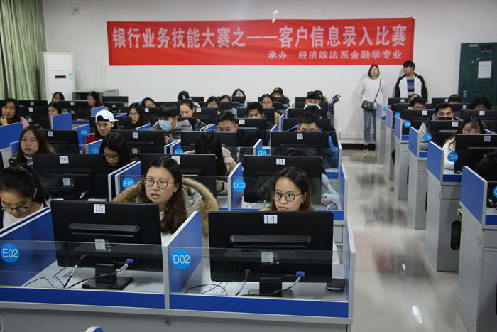 经济政法系第六届“金融伴我行”银行业务技能大赛于11月28日顺利启动,12月21日圆满落下帷幕。本次比赛分设“点钞基本功”、“传票翻打” 、“客户信息录入”三项比赛,金融学教研室两位有多年银行从业经验的老师担任此次大赛的评委和策划,本次大赛还特别邀请到桂林银行芙蓉支行行长助理翟玉及另一位从业多年、柜面技能丰富的柜员担任大赛的技能指导。