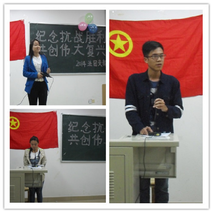 2015年11月5日晚,2014级法学团支部在1315教室展开以“纪念抗战胜利,共创伟大复兴”为主题的团日活动。参加本次团日活动的人员有:2014级法学专业辅导员,院学生会主席,系组织部考评干部,2013级、2015级法学学生代表和2014级法学团支部全体同学。