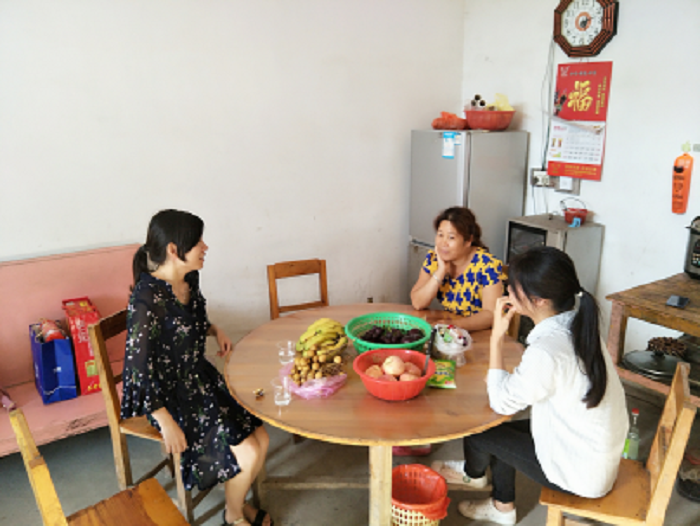 随后,家访队伍到达钟山县钟山镇大耀竹根厂16级金融班李东明家中,该生习成绩中等,积极参加学校各项活动,加入了我校志强社。现任志强社策划部助理及系青年志愿者协会外联部助理,在大一期间被评为二级贫困生。李东明父母外出打工,暑假期间他在家帮忙干农活、照顾年幼的表弟。党委副书记秦丽芸和李东明及婶婶进行了深入的交流,就学生的学习规划和社会实践等方面给予了积极的建议。