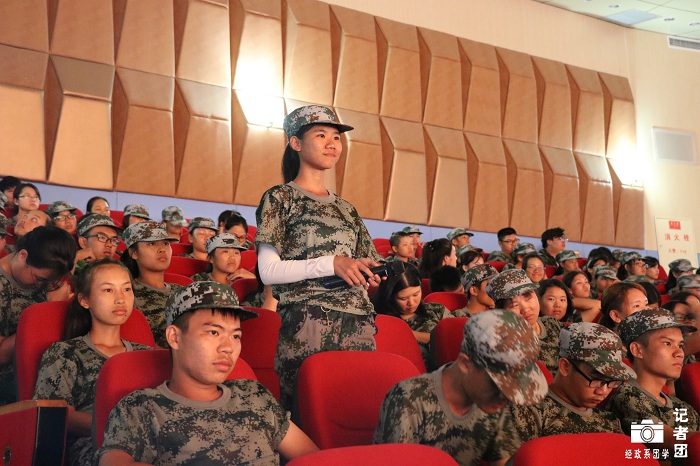 首先,2004级经济专业孟卓华就“大学是什么”向新生们讲述了自己的见解,他说在他看来大学就是一条完整的生产链,而大学生便是一件需要加工的“商品”,在这里可以实现自我深造,提高自身价值从而实现利益最大化,而商品价格的多少则看重大学四年中的努力。同时,他希望同学们在进入大学后应认认真真的去学习、去生活、去恋爱,不荒废这四年美好时光,要对得起这四年时间。紧接着,2011级金融专业潘亚初谈及大学军训时说道,军训虽苦虽累,但要学会享受这个过程,享受这其中的酸甜苦辣,因为这有可能是一些同学的最后一次军训。他还从订立正确目标、对生活的态度、对环境的适应度、参加社团活动等方面向新生提出建议。2013级法学专业陈峥嵘则向同学们分享两年入伍带来的三点感悟,即为学会独立,要有想法;懂得自律,把握时间;学会坚持,实现价值。