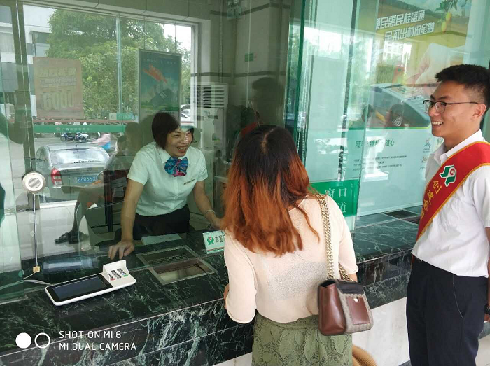 在实习学生周一帆的陪同下,孙琳老师在广西农村信用社营业网点与银行领导和柜员亲切交流,银行的同事对我校学生给予一致好评。北海分行对同学们来信用社实习实践表示欢迎,对大家一个月以来的实习予以肯定,我系实习生也分享了自己的实习感悟并感谢实习单位提供的宝贵机会,认为在学习和从事银行业务的同时更重要的是培养细心谨慎的态度和责任意识,获得领导和老师的赞许。在看望过程中,招商证券实习生余雨婷的指导老师梁经理在座谈中表示:我系学生表现出“勤奋好学、上手快、能吃苦”的品质,也给予较高的评价。