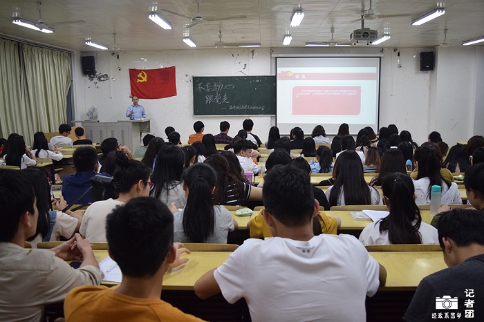为学习和贯彻习近平总书记视察广西时的重要讲话精神,5月4日晚,经济政法系于1404教室对系全体党员及入党积极分子进行了党课交流学习会,并特邀我系党总支书记甘华成作为此次会议的主讲人。