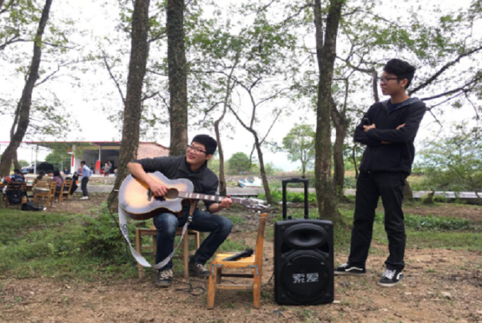 当天清晨,2014级经济学团支部全体成员与老师来到食堂小广场,在班委的组织下坐上开往莲花岛的大巴。一个小时的车程虽然遥远,但是也磨灭不掉同学们的热情。当天的活动有两个环节。第一项环节,便是让同学们自由活动。在主持人宣读安全须知并宣布开始后,同学们变三三两两带上自己准备的食物自行游玩。第二项环节,是才艺展示环节。杨罡同学多才多艺,吉他弹唱歌曲串烧,为活动炒热气氛。随着节目的进行,节目也接近了高潮部分,谭玉柳同学甚至模仿近期大火的PPAP,让同学们开心的大笑起来。一首又一首的歌曲飘荡在莲花岛的林间,随着莲花岛流淌的山泉水流向远方。