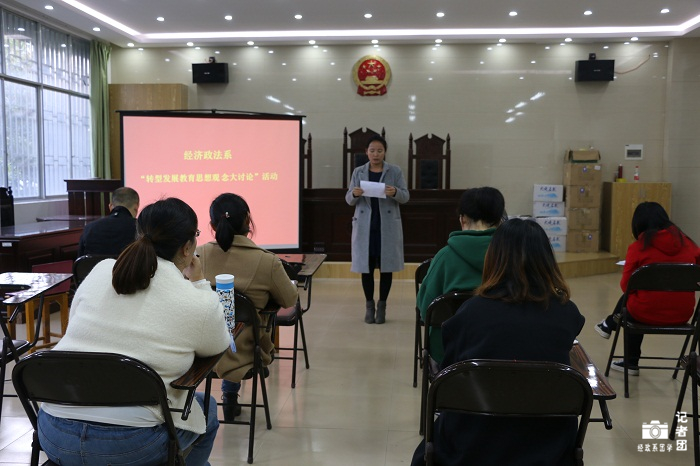 11月1日,针对“转型发展教育思想观念”的探讨,我系辅导员在模拟法庭对“转型发展中辅导员面临的问题及解决方法对策”和“辅导员队伍2016-2020围绕转型发展开展主要工作”这两方面进行交流。系党总支书记甘华成、全体辅导员参加讨论会,活动由团总支书记林凤凤主持。