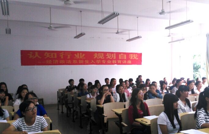 为了加深国际经济与贸易专业2016级新生对外贸行业的了解,明确当前国贸专业学生就业前景,及早进行合理的大学生涯及职业规划,经济政法系于9月30日下午在1315教室举行以“认知行业,规划自我”为主题的新生入学行业认知教育讲座,并邀请到外贸从业30年的专家巫大榕老师担任本次讲座的主讲嘉宾,经济政法系国际贸易教研室全体教师也参加了本次讲座。