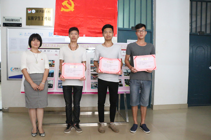 活动开始,主持人首先宣读表彰名单。经过一个学期的考核, 2013级法学、2014级国际经济与贸易、2015级经济学三个专业获得学风优良班级荣誉称号,金融学学生党支部获得优秀学生党支部。经济政法系党总支书记、副书记分别为获奖党支部、班级颁发荣誉证书。随后,作为连续六个学期获得学风优良班级的2013级法学学生代表杨强同学给大家分享经验。他在介绍班级管理做法的同时说到,班级就像一个紧握的大拳头,必须紧紧拧在一起,凝聚班级力量,班级建设才能取得优秀成果。经济政法系党总支书记甘华成在活动上发言,他指出今年我们迎来建党95周年,每位党员同志应牢记党员身份,自觉带头践行“两学一做”,鼓励在此次表彰会上获奖的党支部要起到积极示范作用,以身作则;获奖班级要注重传播班级管理的优秀做法,再接再厉,带动其他班级,为我系创造优良学风发挥模范作用。