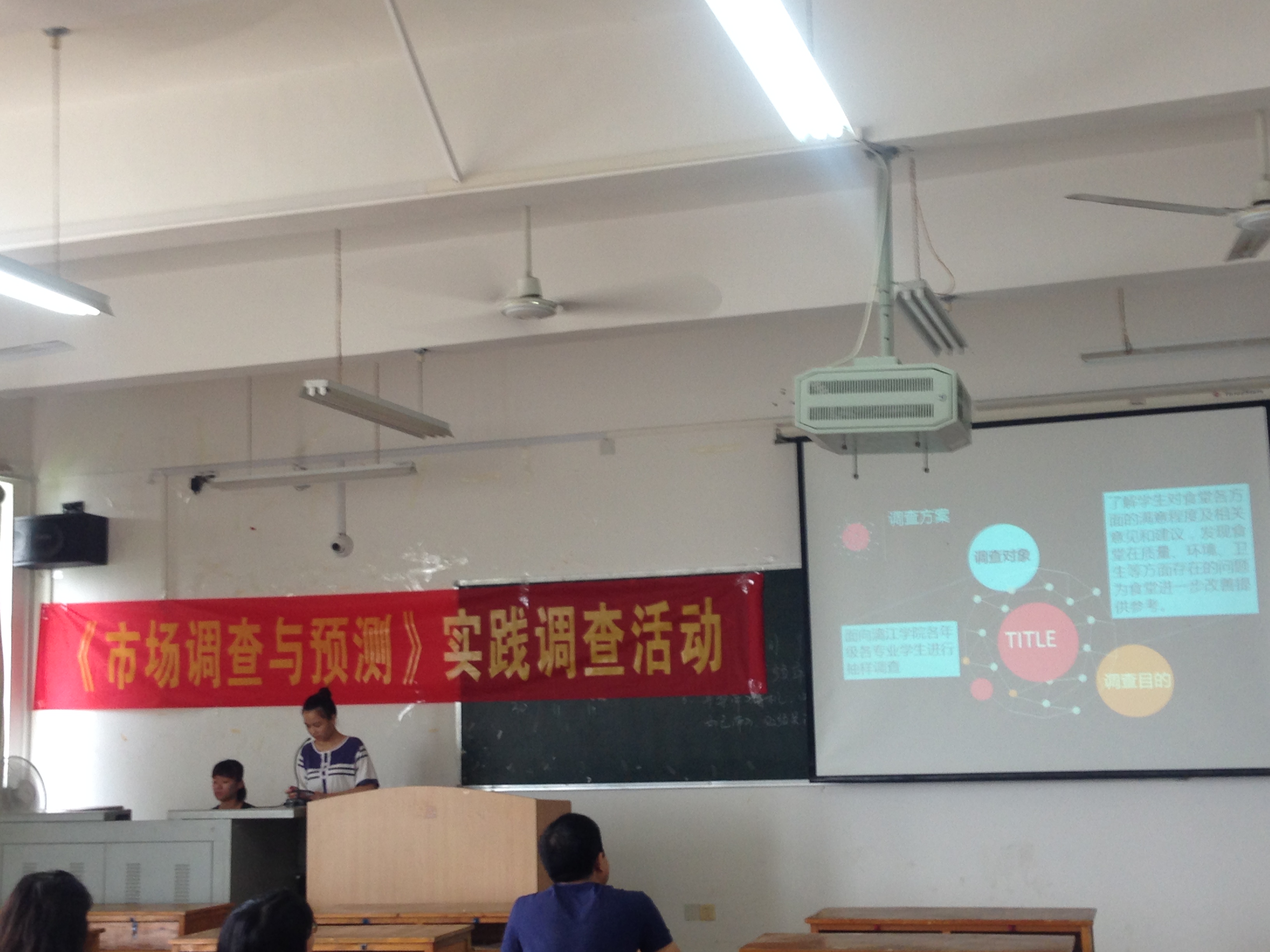 该项活动是围绕2014级经济学专业的《市场调查与预测》课程所开展的实践教学环节。活动要求以10-15名学生组成一个调研小组,调研主题涉及大学生学习、生活及社会热点等方面。调研活动期限为两个半月,从①确定调研主题、②拟定调研方案、③设计调研问卷、④实施问卷调查、⑤撰写调研报告等五个调研环节对小组调研过程进行指导和考察,最后小组通过PPT展示的方式将调研成果做总结性汇报。