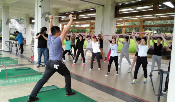 该专题课程分三次授课,组织同学乘车前往桂林旅游学院的高尔夫教学基地进行学习和授课,初次接触高尔夫的同学们在曹鹏老师的悉心指导下,丰富了对高尔夫的认识,循序渐进的从高尔夫的球具、场地、规则的基础知识开始讲解,之后学习打高尔夫的注意事项和技巧,最后通过对教学内容的总结深化学习高尔夫运动和礼仪的深刻意义。曹老师的高尔夫球专业知识深厚,并且细心地注意上课期间每一位同学的学习进度和实训效果,调整他们的握杆姿势,耐心地进行修正,亲身进行示范以及鼓励同学们继续努力。不仅让同学们体验到高尔夫运动的独特魅力,也让感受到高尔夫运动对人的思想修养的熏陶。