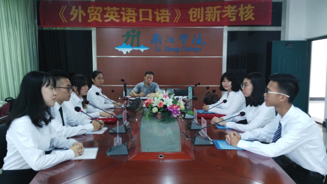 为提高2014级国贸专业学生学习外贸英语口语的兴趣和学习英语口语的效果,6月13日-21日,针对2012级国贸专业同学的“外贸英语口语1创新考核” 在外贸商务谈判实训室正式举行。本次考核采取学生自由组合的方式,扮演进出口双方各个角色,按要求的场景完成英语口语对话,各个场景包括机场接机、欢迎、展示间展示样品、谈判桌谈判等。同学们以默契的表演、标准激情的语音、优雅的礼仪、生动准确的表达,博得掌声阵阵,偶尔几句憋脚的口语也让同学们开心的笑声时起时伏,整个考核现场气氛和睦热烈。