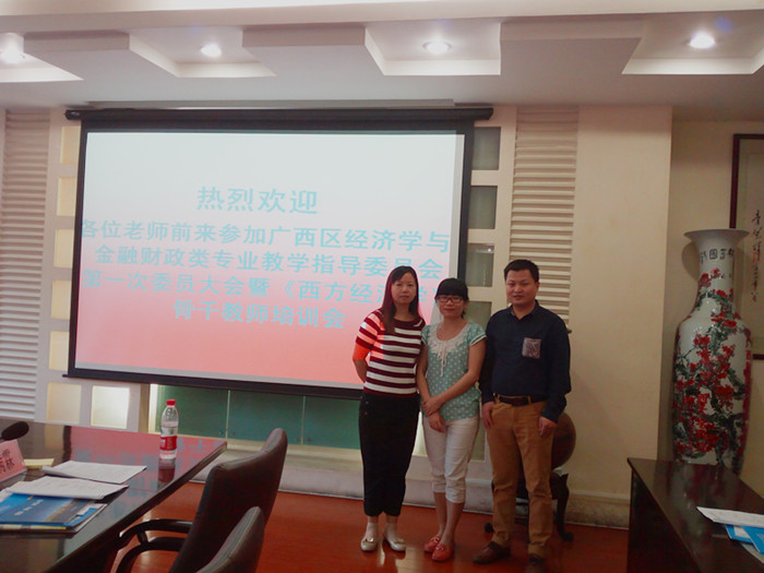 为了加强经济学教学团队的理论和科研水平, 5月14日,经济政法系经济学教研室覃顺梅、王铁梅、李志献老师一行3人参加了由广西区本科高等经济学与财政金融学类专业教学指导委员会与高等教育出版社联合举办的“名师谈科研与教学——2016年广西区西方经济学高级研讨会”。此次研讨会在广西财经学院召开,来自全区多个高校的经济学教学团队围绕着经济学理论和教学的问题进行了研讨。