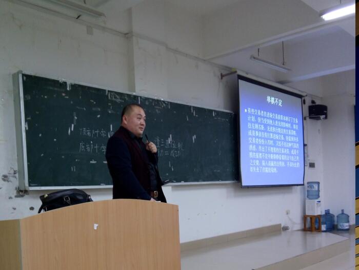 为积极响应和贯彻学院深化校企合作的办学理念,经济政法系特邀请桂林金泽投资有限公司的龚占冰经理于12月9日在1214教室为2013级国际经济与贸易专业的学生开展了一场别开生面的讲座,参加活动的有经济政法系教师代表胡乐天和2013级国际经济与贸易专业全体学生。