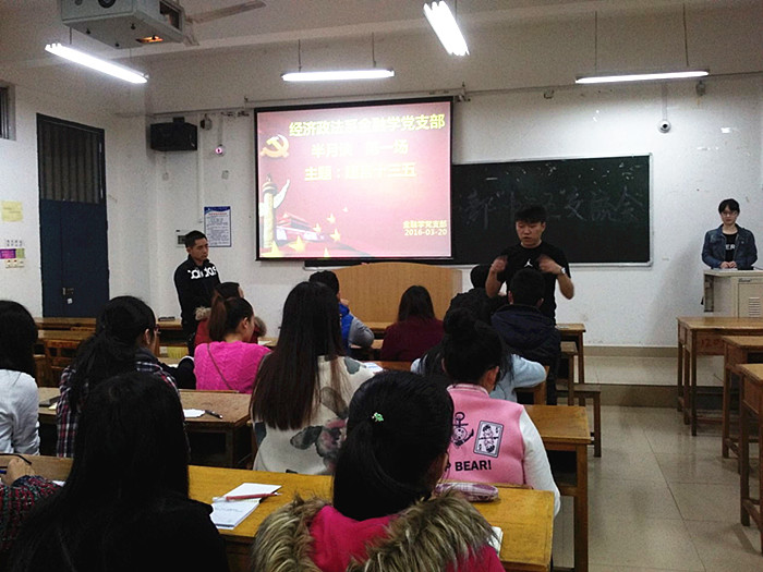 第十二届全国人大四次会议于3月16日顺利闭幕。为了更好地了解党和国家的政策,学习“两会”精神,3月20日晚,经济政法系金融学党支部举办了以“建言十三五”为主题的半月谈活动,每位学生党员以“大学生创业”为核心进行发言。
