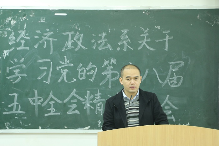 12月9日晚,由经济政法系党员活动办公室组织的学习党的十八届五中全会精神学习报告会于1414教室顺利召开。经济政法系党总支书记甘华成老师和我系14级各党支部学生党员参与了本次会议。