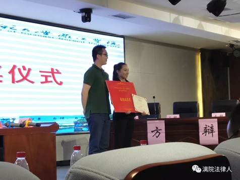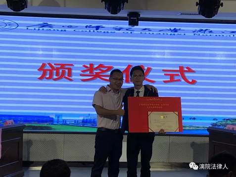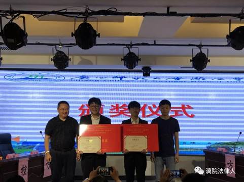 王小兵律师与陈建文老师为获得团队二等奖的队伍颁奖