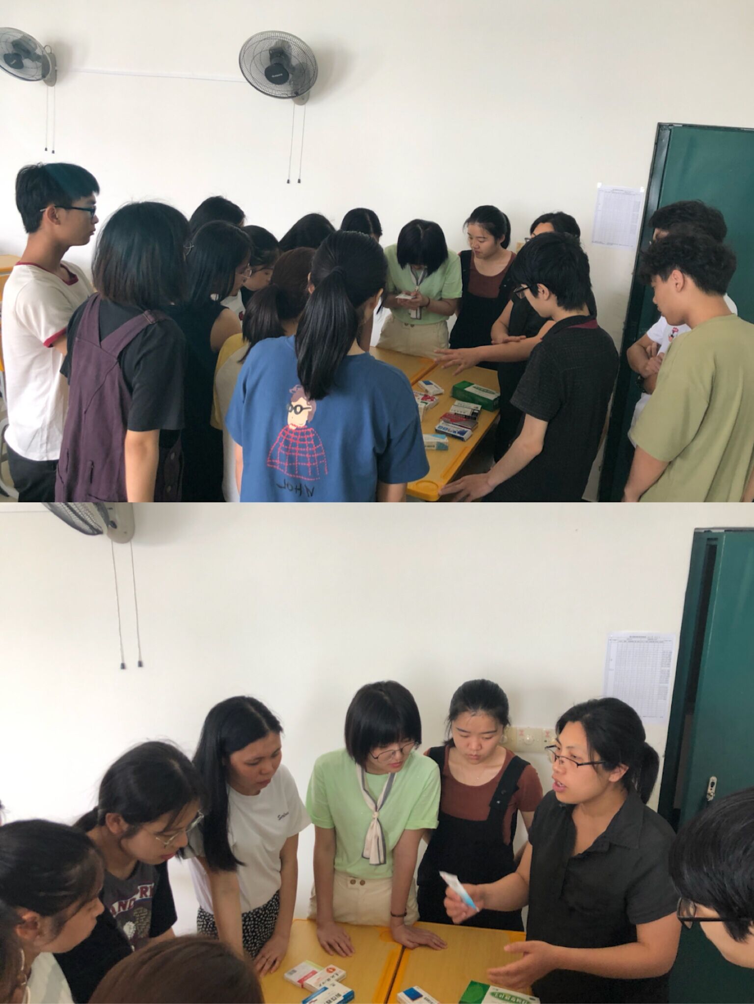 三是旅游常用药分辩。邀请了校医院的蒋小丽医护共同讲授。学会在遇到伤病员时,结合教师讲授的案例,查看伤病员的现场情况,求救高级医护人员的同时,学会对日常药物的了解。
