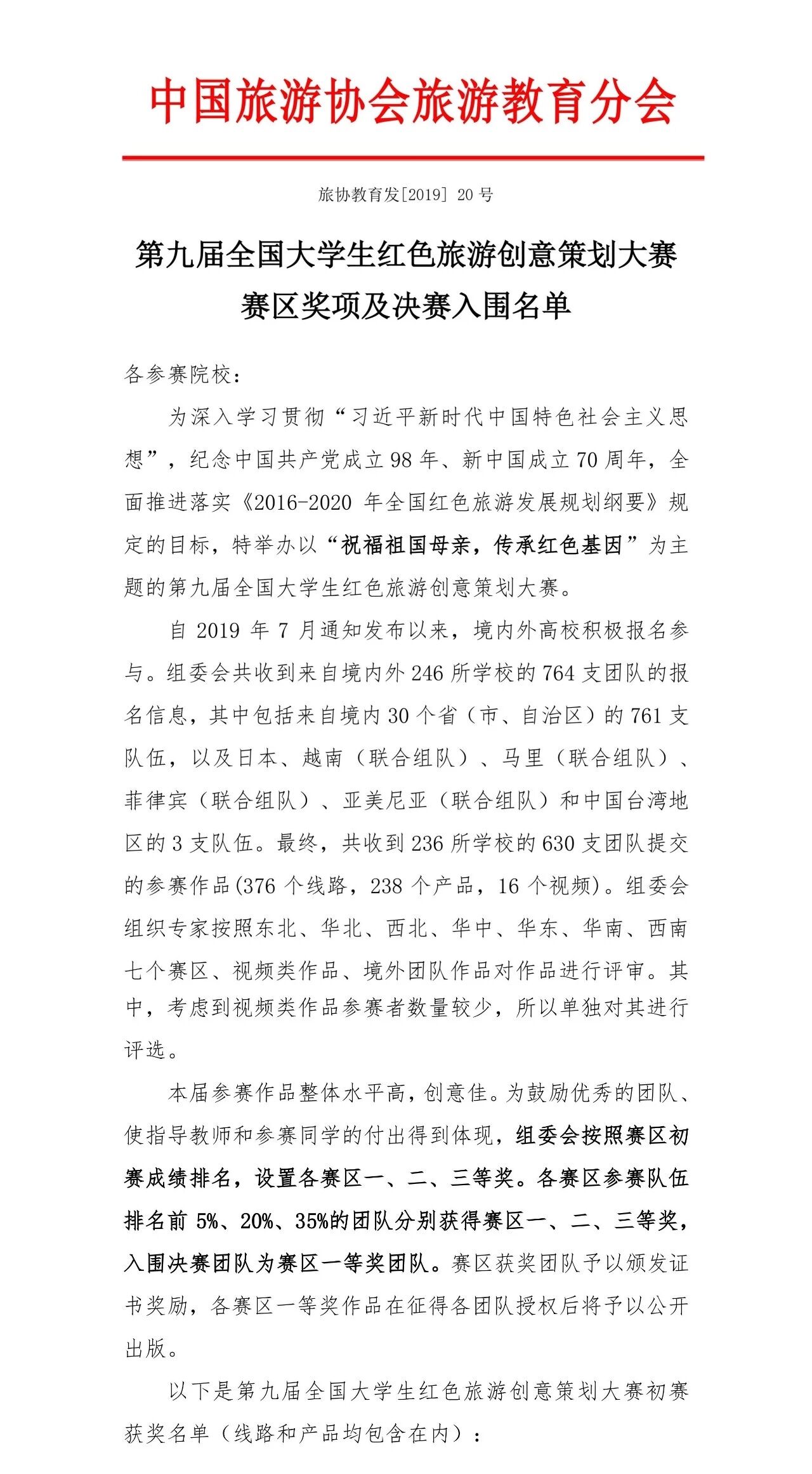 我院2017级旅游管理专业祝玥、白予婕、2017级酒店管理专业韦秋利同学组成的“红色娘子军”团队在韦达、刘莹莹两位老师的指导下荣获第九届全国大学生红色旅游创意策划大赛华南地区三等奖。