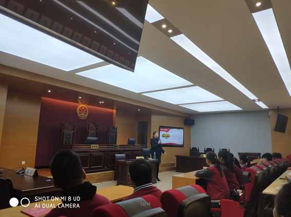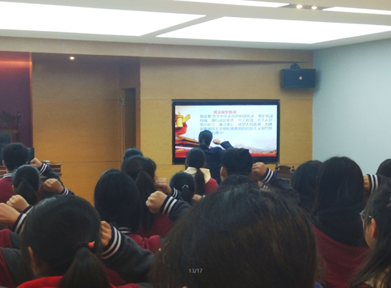 为掀起同学们学习宣传宪法和国家根本政治制度的热潮,探究我国宪法解释的现状,加强本专业同学对于宪法的更深刻认识,展望未来宪政之路的发展方向,12月4日早上,学院党总支副书记、第二学生支部书记刘雪老师带领法学团支部全体成员在模拟法庭进行了“不忘初心、牢记使命”宪法宣誓活动。