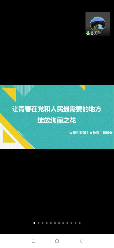 辅导员首先简单介绍了当前疫情防控和国内外复杂形势,从宏观层面引导出青年大学生爱国主义教育的意义。然后,他从四个方面阐述了爱国的信心源自于哪里、什么是爱国、爱国教育的重要意义和我们青年大学生如何“绽放自己的绚丽之花”。他引用了援鄂医疗队“90”后青年医护人员不畏风险,舍身奉献的精神,证明当年青年有能力堪担大任;举例方方和她的《武汉日记》,以一种极度负面阴暗的角度去歪曲武汉抗疫的事实,引发学生思考何为爱国。他引导同学们从澳门的爱国主义教育和香港暴乱的对比中思考,反思爱国主义教育的重要意义。
